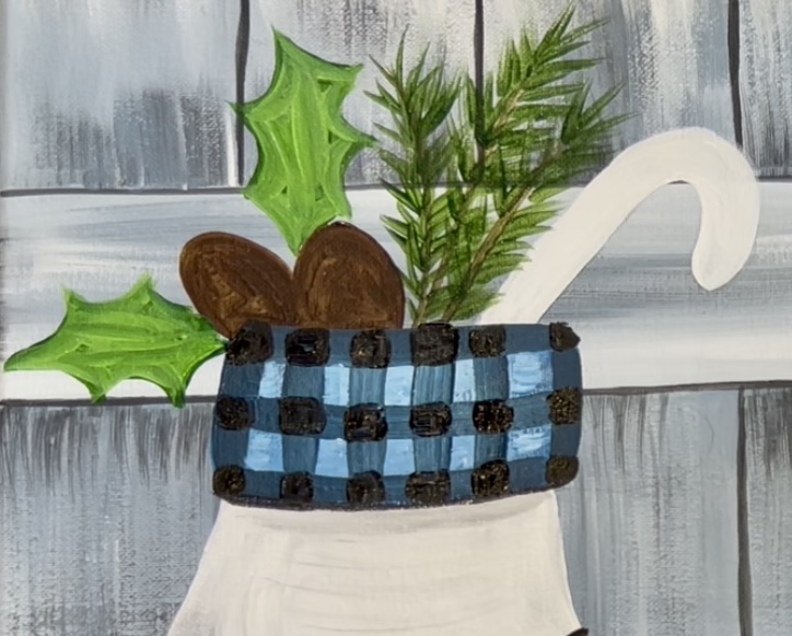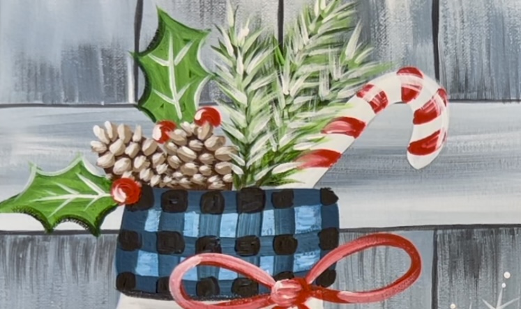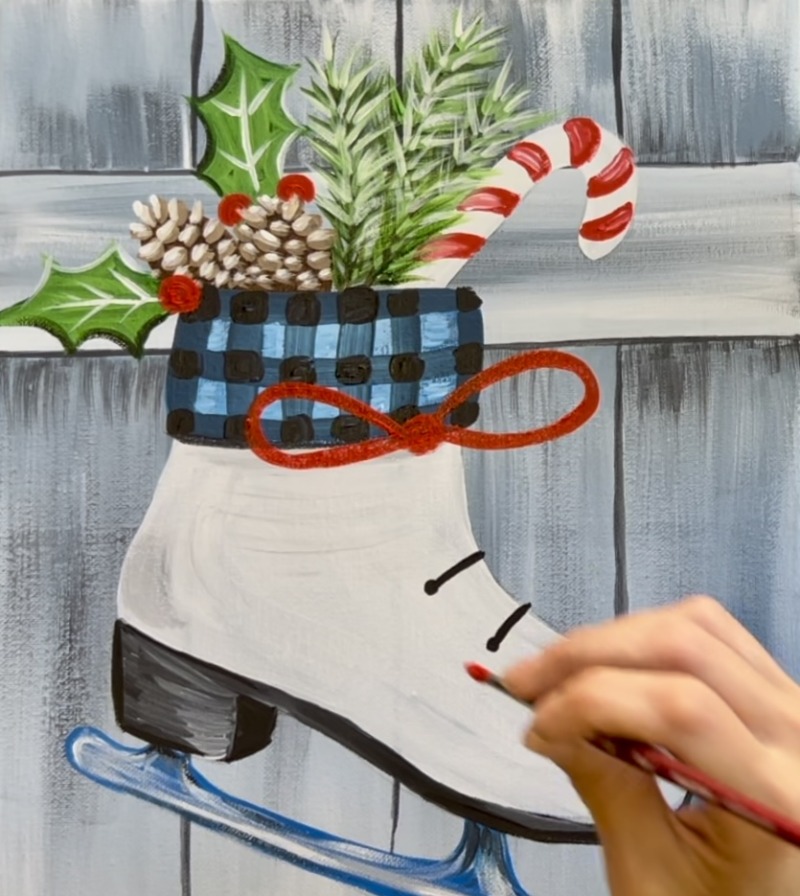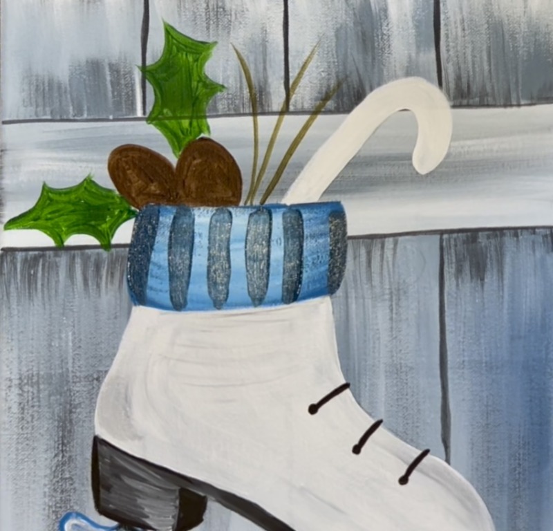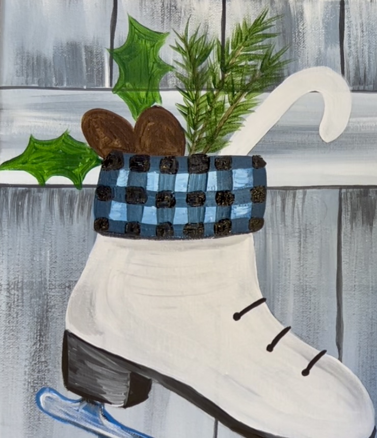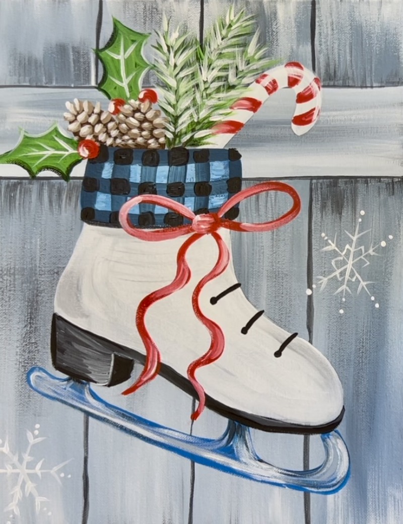 Celebrate the season with this fun and festive beginner-friendly painting! In this tutorial, you’ll learn step-by-step how to paint a classic white ice skate filled with holiday greenery, pinecones, and candy canes — all set against a snowy, wood-textured background. We’ll practice simple brush techniques to create plaid patterns, pine needles, and soft snowflakes, perfect for adding cozy winter charm.