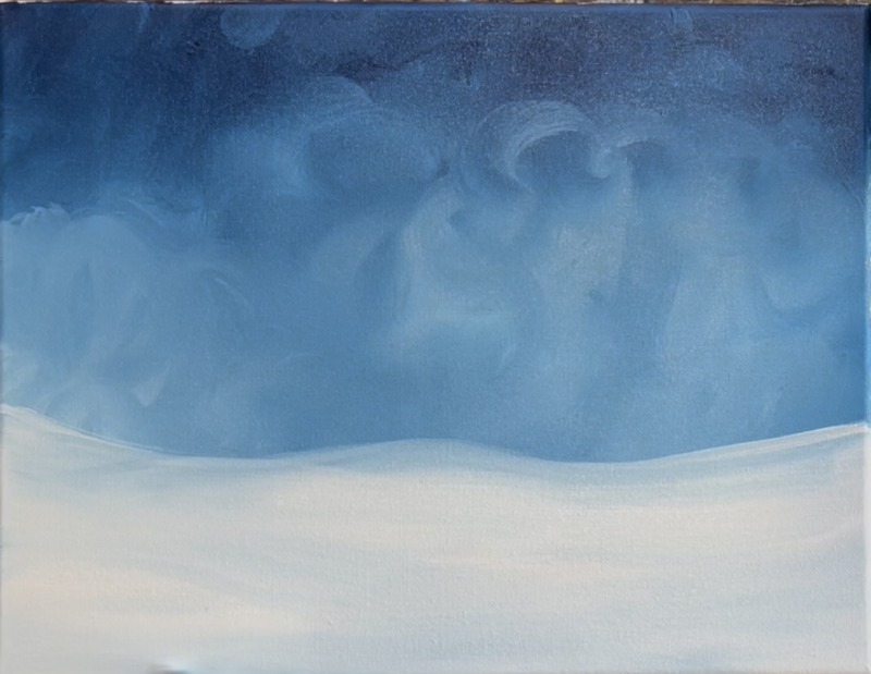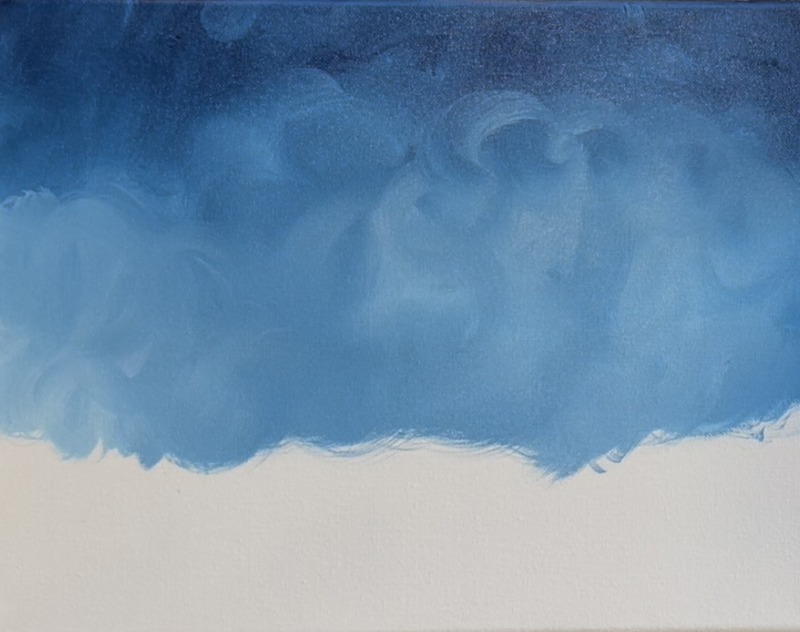 Then go back to the 3/4″ flat brush and add more white towards the bottom of the sky. This will be the brightest part of the sky.