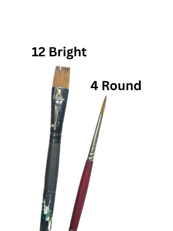 *Note: this is a brush that is 1/2″ wide and about 1/2″ long. Some find the 12 bright brushes “too big”. That is because they get labeled differently by brand. The one that I use is a “Royal & Langnickel” Majestic Brush but that are others you can find from Amazon such as this one in a pack.