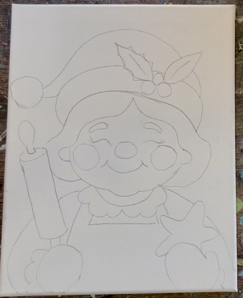 1. Draw or transfer Mrs. Claus pattern to canvas