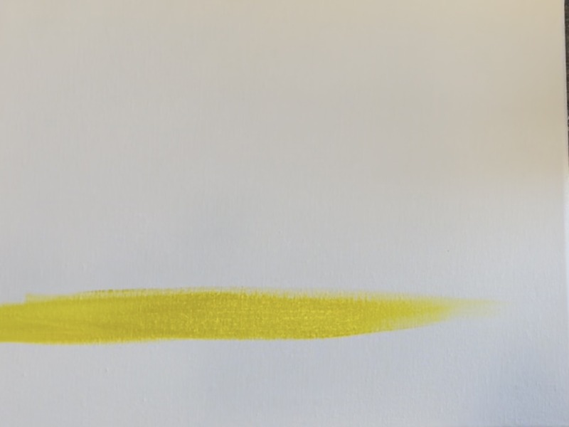 Next, use the 3/4″ flat brush and double load it into yellow and white. Paint left and right strokes across the canvas at that 2.25″ mark.