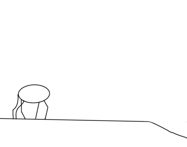 Fill this land area in with solid black. Then bring the line up just a little bit on the right to create a small hill that dips back up.