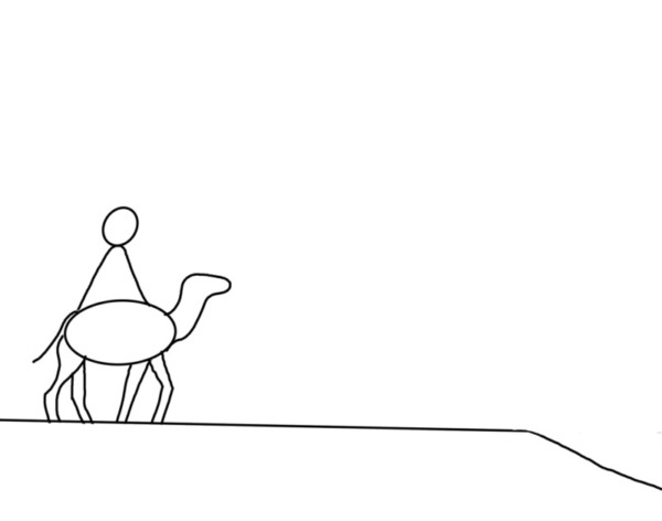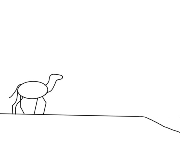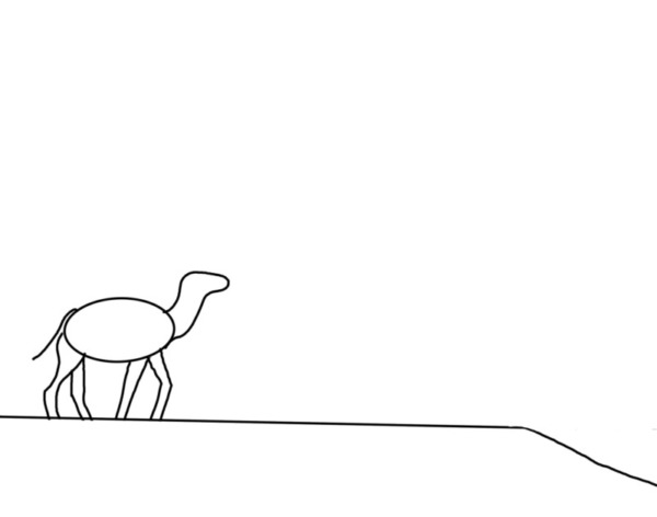 Then draw the camel’s neck and head. Draw a simple line for the tail.