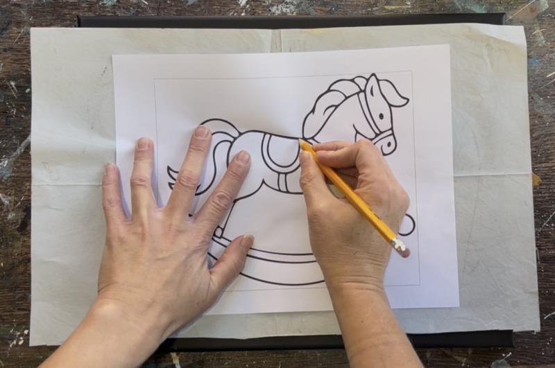 This painting lesson includes a traceable template for the rocking horse, so there’s no need to hand-draw the main subject.