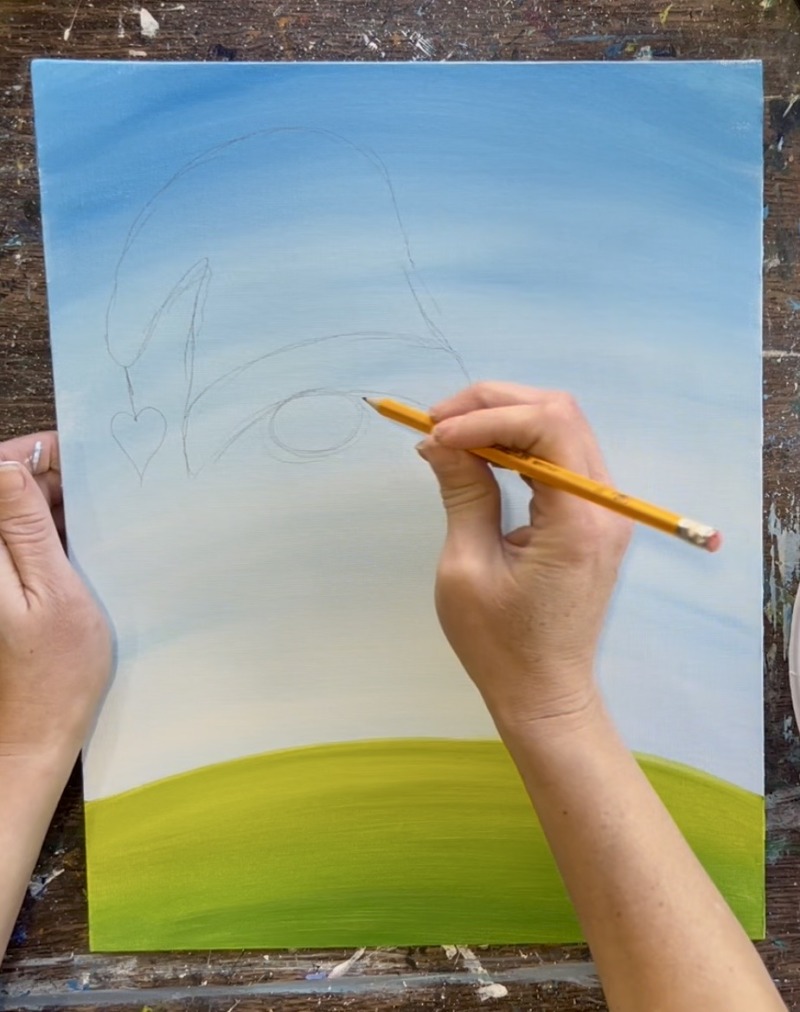 This traceable can be printed out and traced onto an 11 x 14 canvas. You can trace onto a blank white canvas and then outline with sharpie so the lines show through the first background layer of paint. Alternatively, you can paint the background and then trace onto the canvas. I recommend dark graphite paper for tracing.