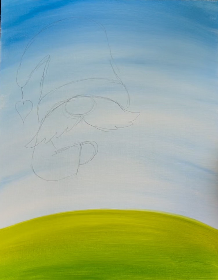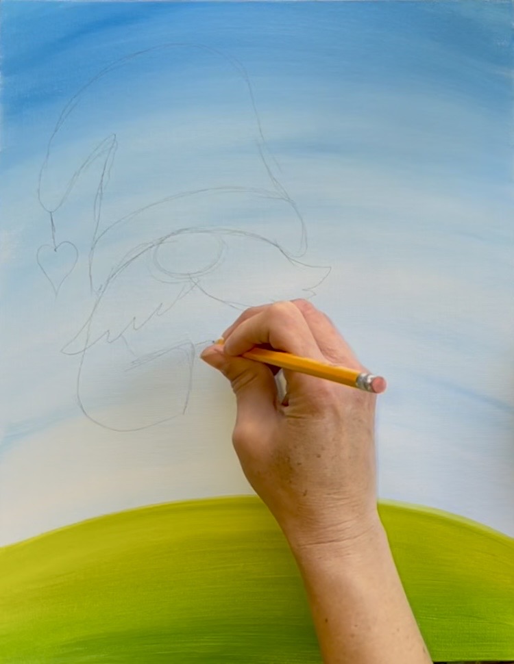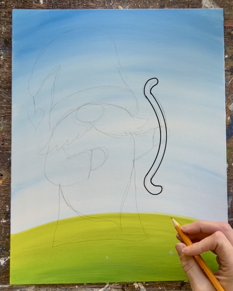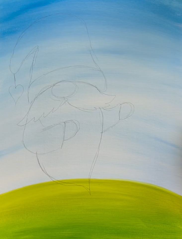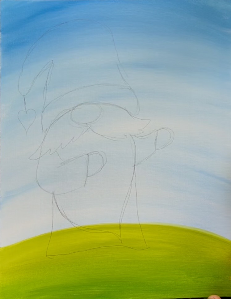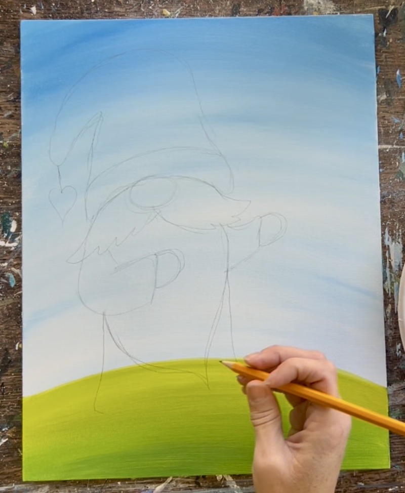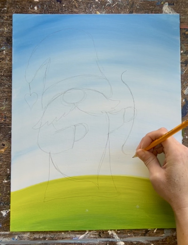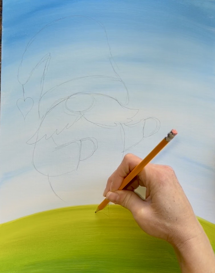 If you are using the tracer, place a sheet of graphite paper below and trace onto the canvas. You can also hand draw this gnome! Follow instructions below: