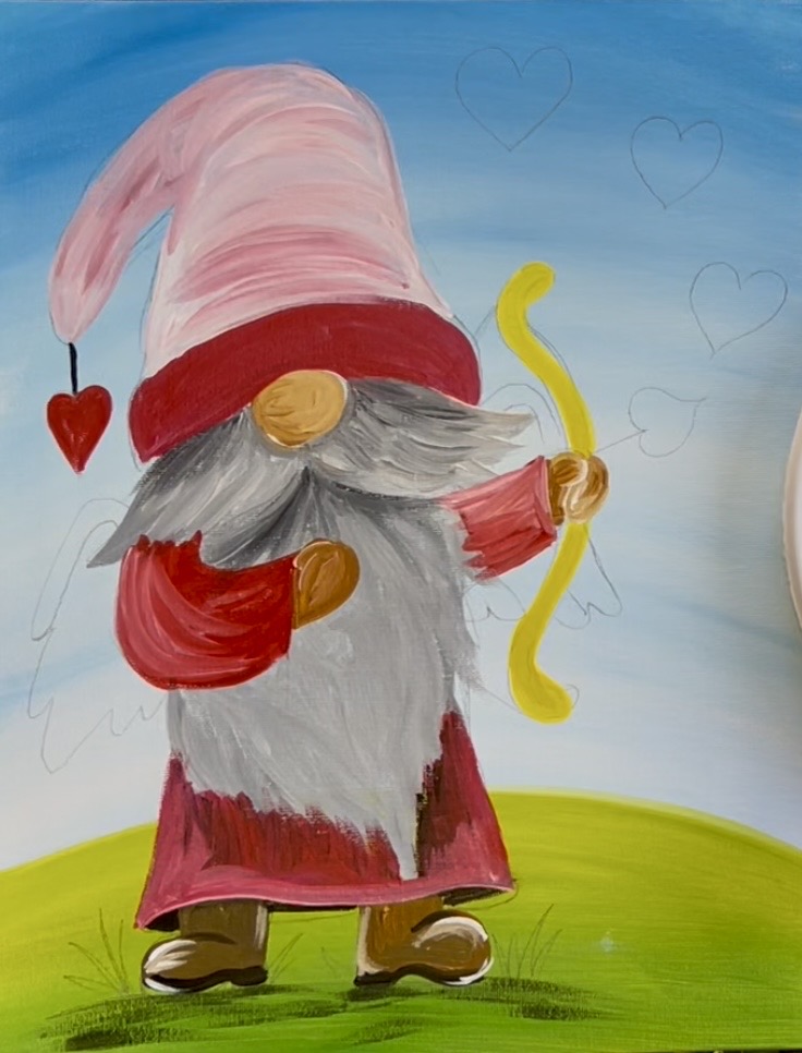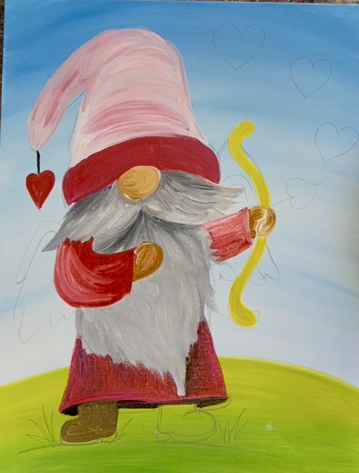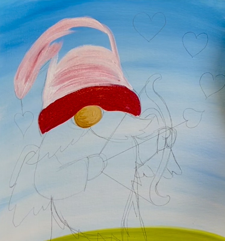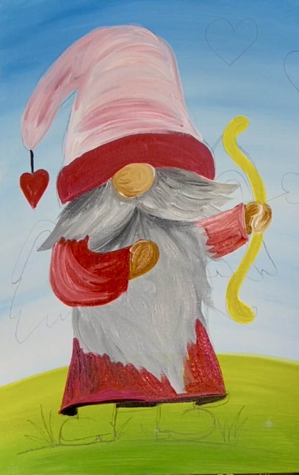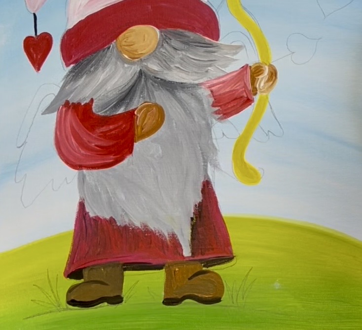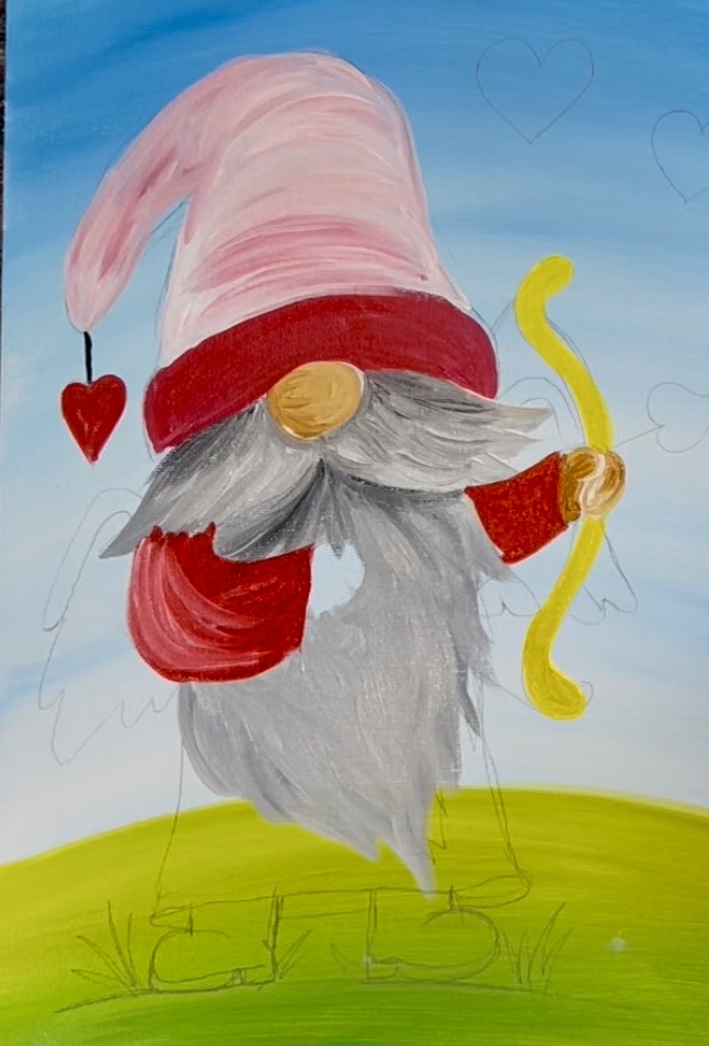 Learn how to paint a cupid gnome with acrylics on canvas.