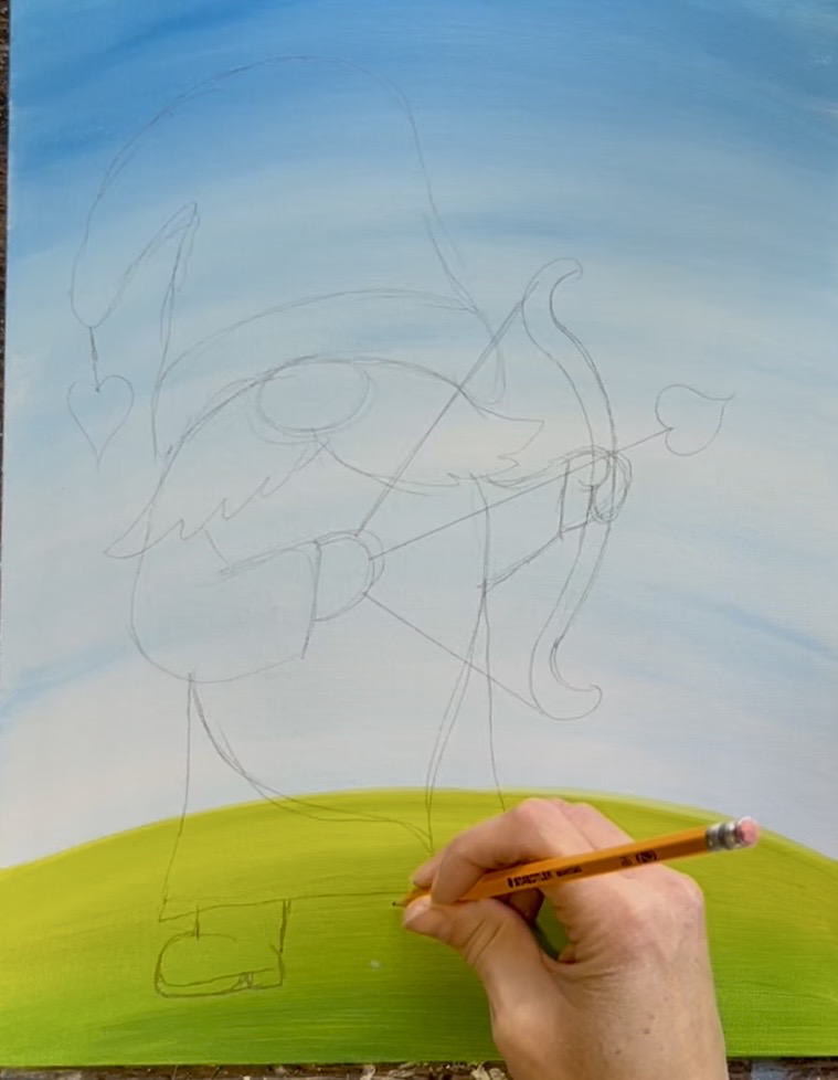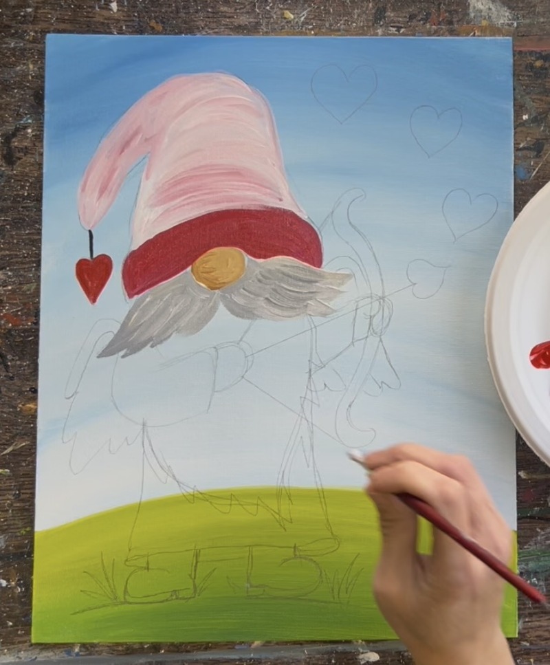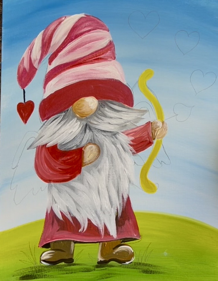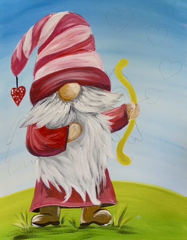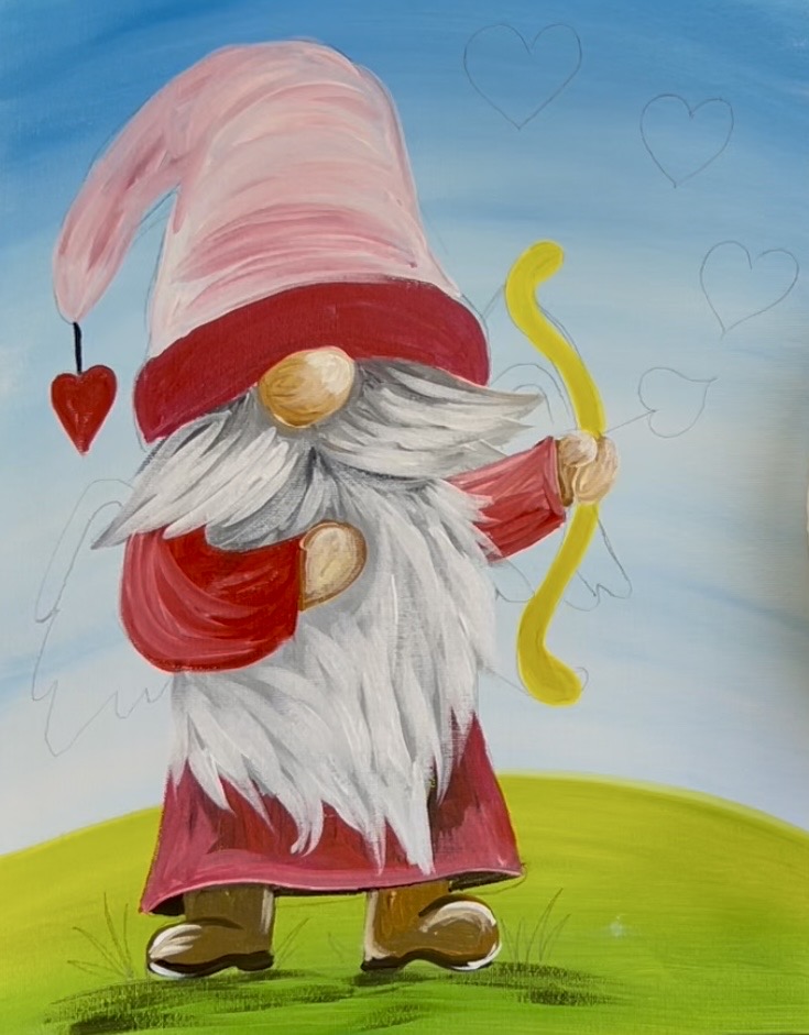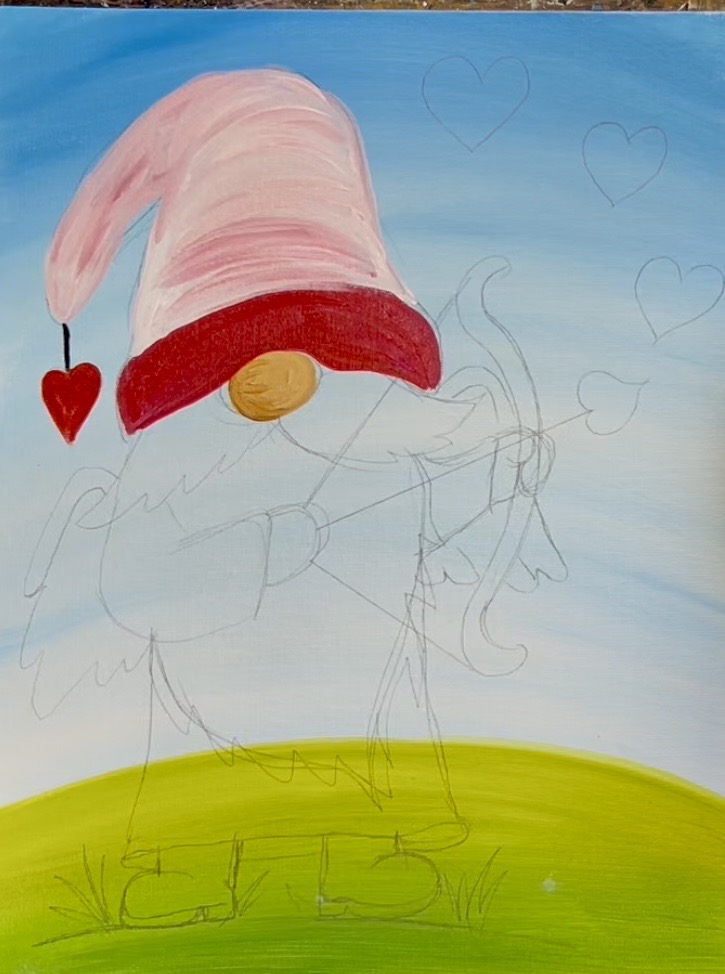 Learn how to paint a cupid gnome with acrylics on canvas.