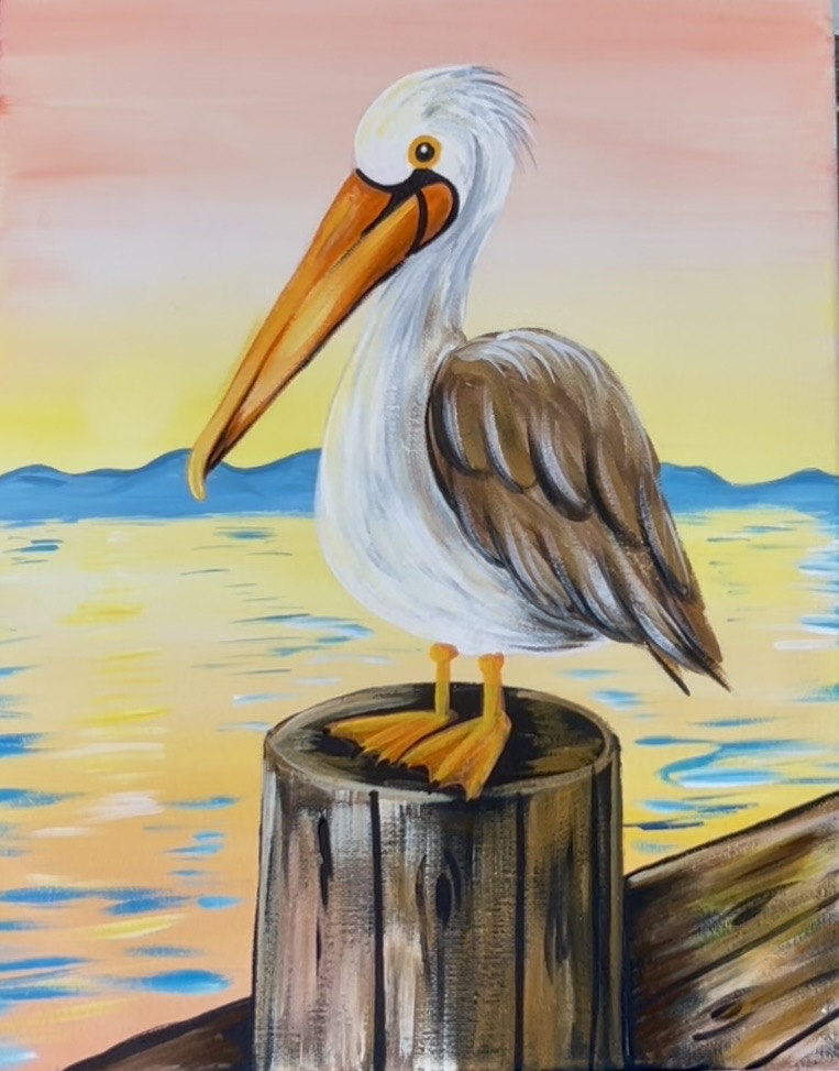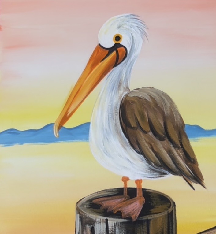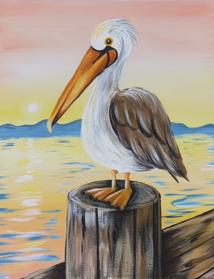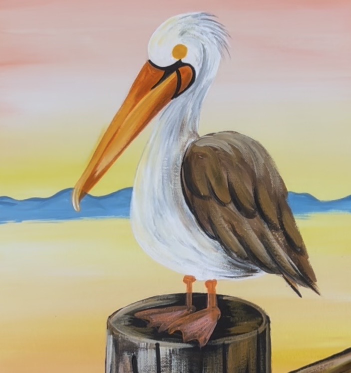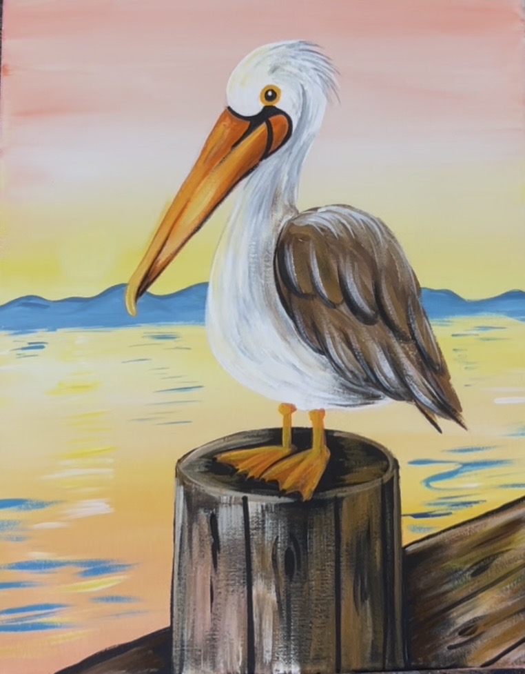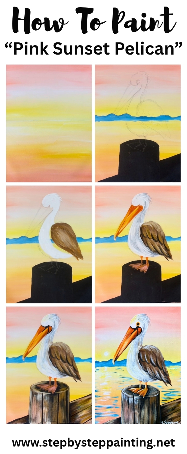 This tutorial is a peaceful coastal favorite—a beautiful Sunset Pelican painting! In this beginner-friendly acrylic lesson, we’ll create a charming pelican perched on a dock post, surrounded by glowing sunset reflections across calm water and soft pastel skies.