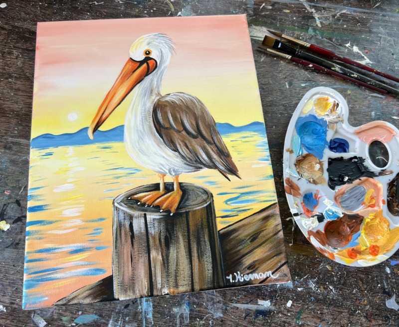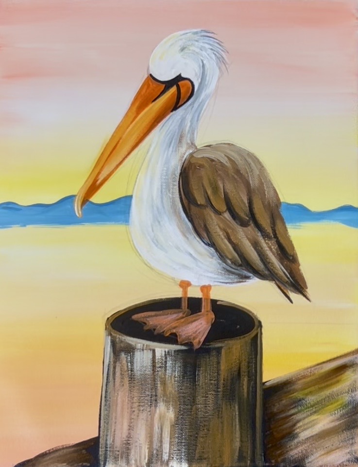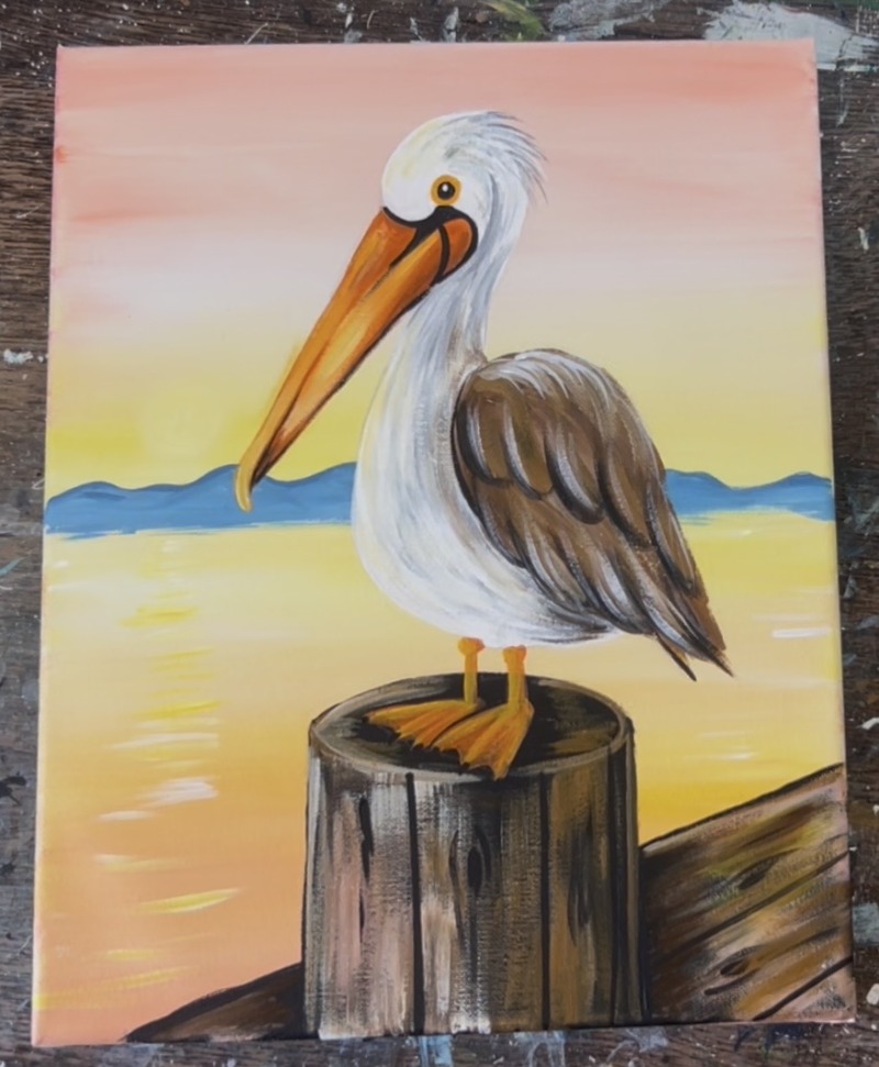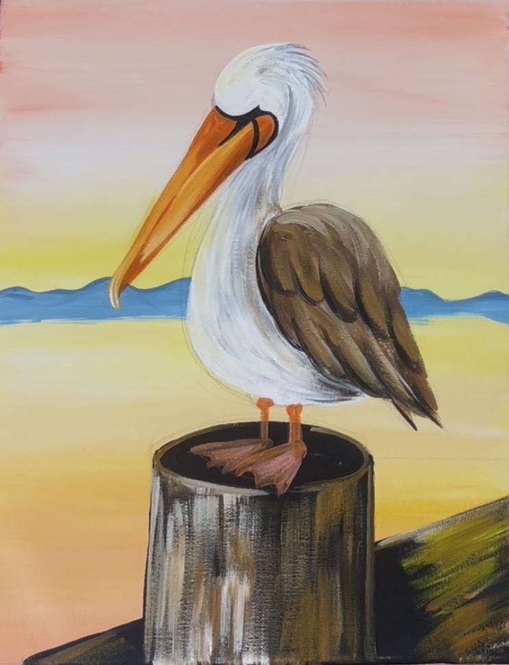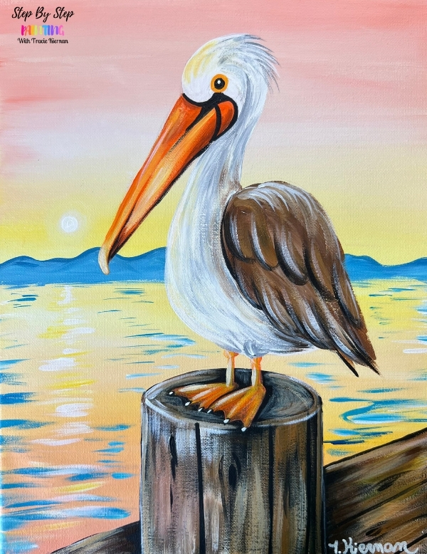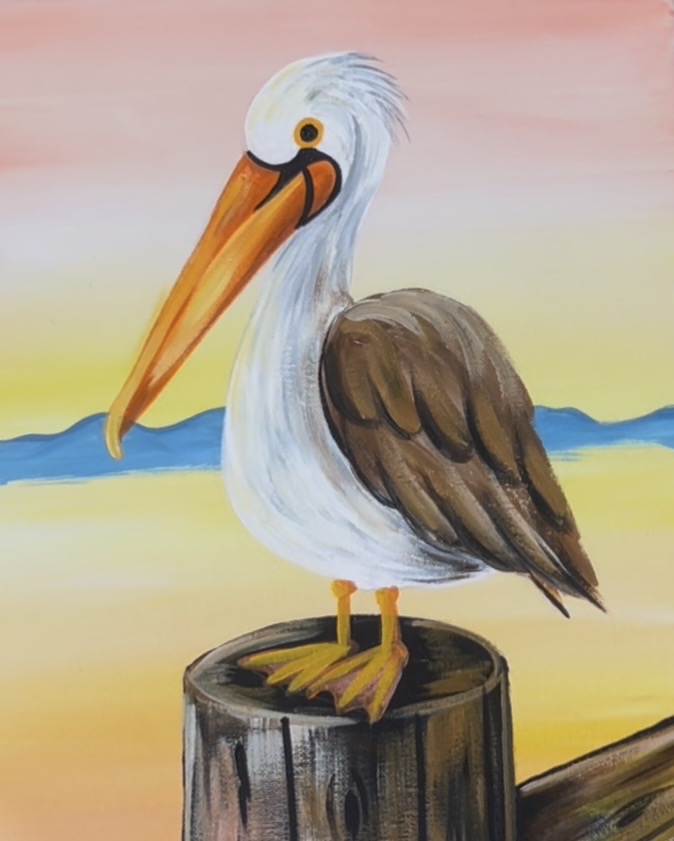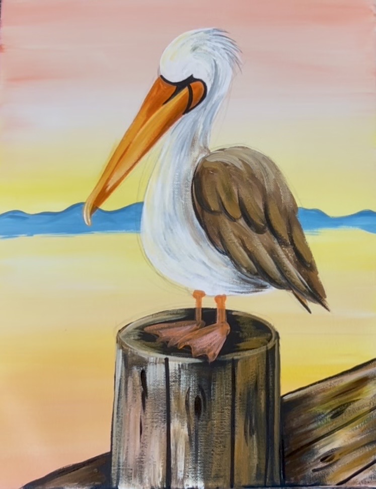 This tutorial is a peaceful coastal favorite—a beautiful Sunset Pelican painting! In this beginner-friendly acrylic lesson, we’ll create a charming pelican perched on a dock post, surrounded by glowing sunset reflections across calm water and soft pastel skies.
