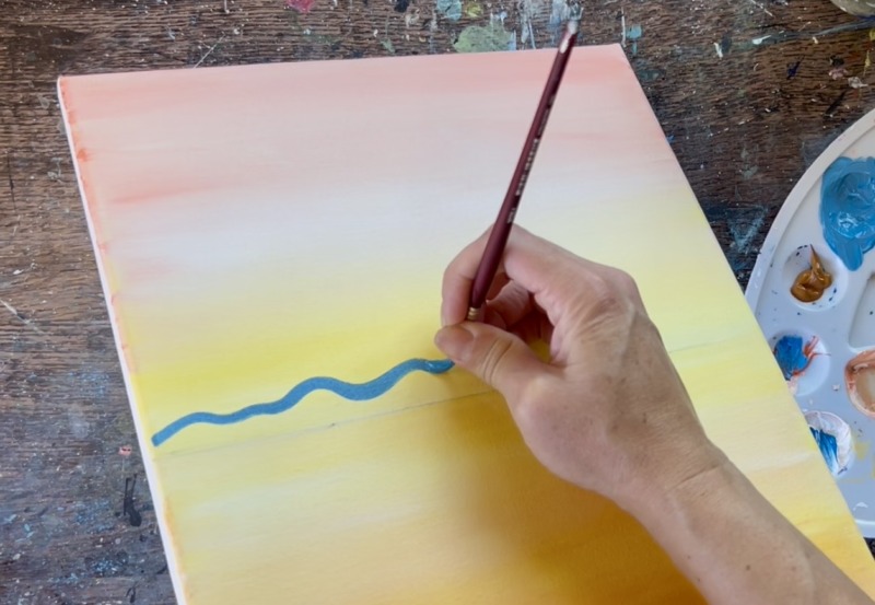 Note: don’t worry about where the dock will be, simply paint the whole bottom half of the canvas with the base color for the ocean.