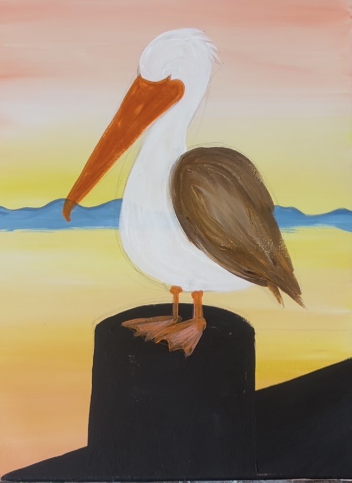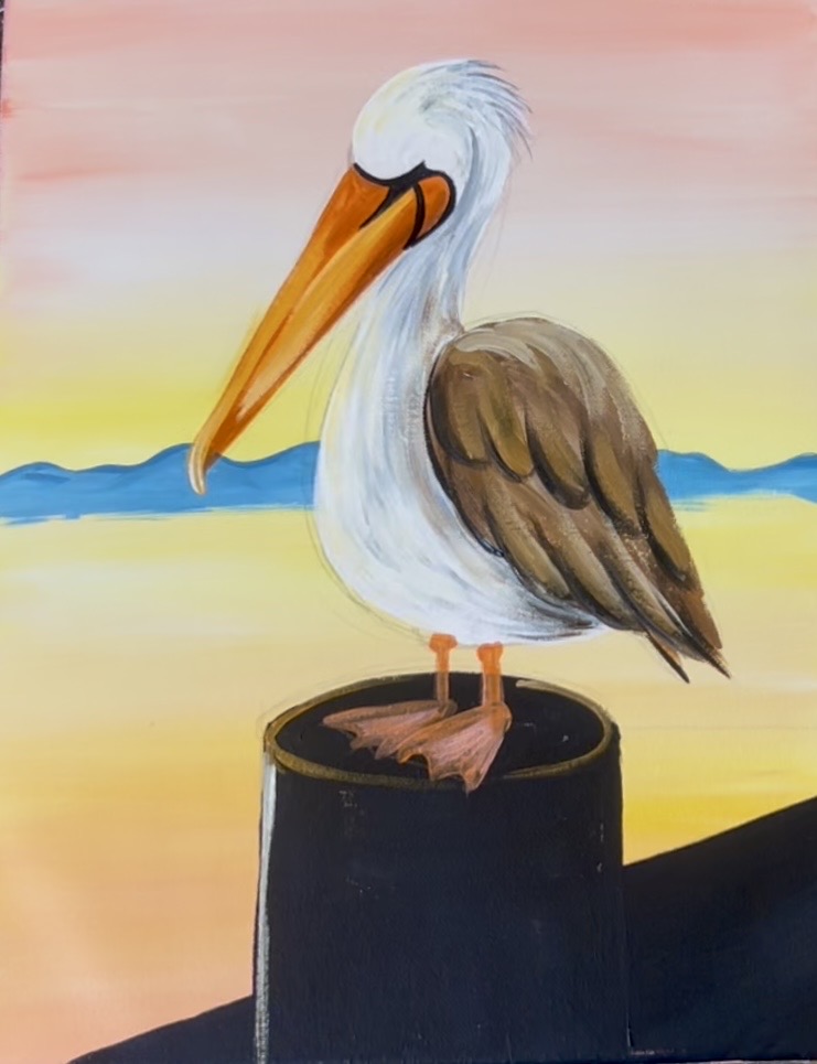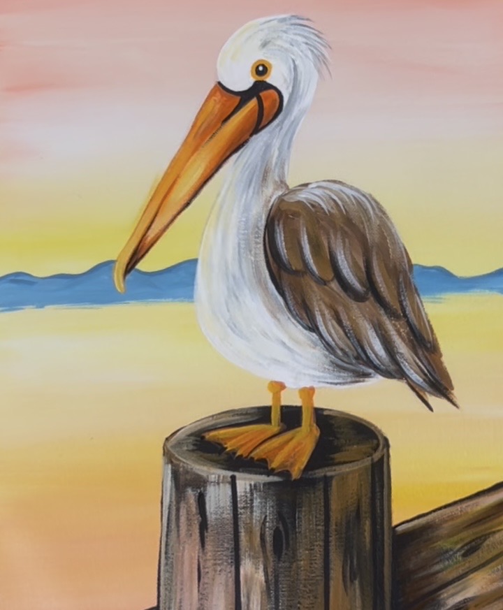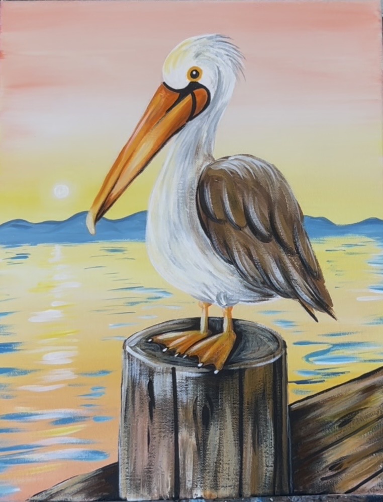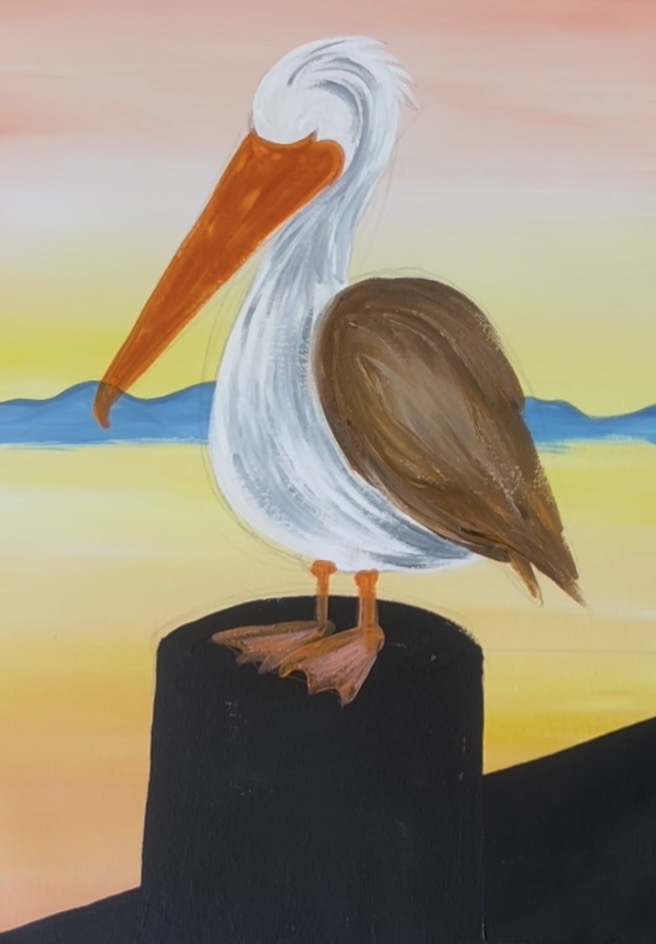 This tutorial is perfect for practicing smooth blending in the sky and water, simple feather shapes, and bold highlights that make the pelican really stand out. We’ll also work on creating warm sunset tones with soft pinks, yellows, and blues to give the whole painting a relaxed, coastal feel.
